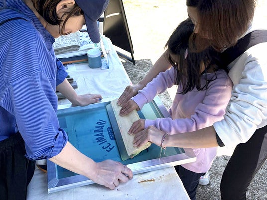 ご家族それぞれお選びいただけるサイズのTシャツをご用意し、お好きな色でシルクスクリーンプリント体験をお楽しみいただけます。