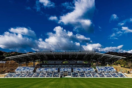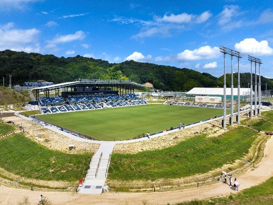 しまなみの海が見える今治市の高台に位置するアシックス里山スタジアム。