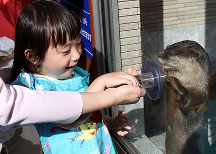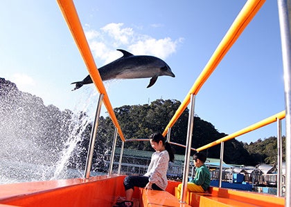下田海中水族館は、伊東小涌園より車で約90分、伊豆半島南部の下田にある自然の入り江を利用した 水族館です。敷地内にある海のステージでは、元気に泳ぎ回るイルカを見るだけではなく、実際に 触ったり、一緒に泳いだりできます。イルカ以外にも、アシカやアザラシのショー、コツメカワウソへのエサやりなど、魅力的な体験プログラムがたくさんあり、夏の思い出作りにピッタリです。