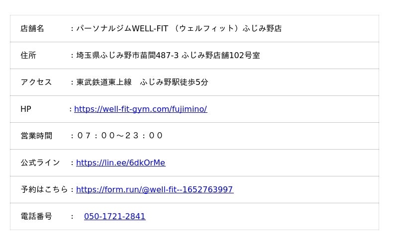 HPはこちら→https://well-fit-gym.com/fujimino/