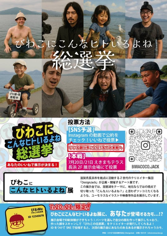 滋賀県長浜市を拠点に活動するZ世代クリエイター集団Design Jackは、琵琶湖にいないようでいる!?人々を描くシュールなイラスト展『びわこにこんなヒトいるよね展 #04』を、2025年7月 20日(日)より滋賀・えきまちテラス長浜で開催します。
