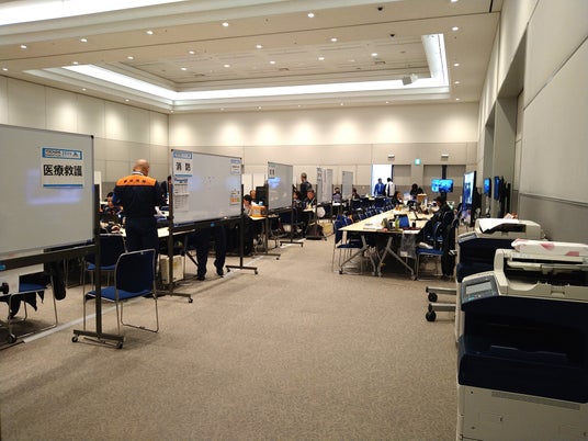 (1)普段入ることができない大会本部や設営中の会場を見学