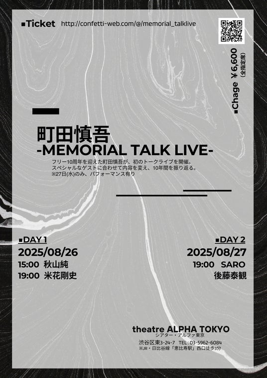 『町田慎吾 -Memorial Talk Live-』公演期間:2025年8月26日 (火) ~ 2025年8月27日 (水)