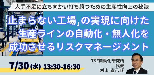 JPI(日本計画研究所)は、TSF自動化研究所 代表 村山 省己 氏を招聘し、「止まらない工場」の実現に向けた生産ラインの 自動化・無人化を成功させるリスクマネージメントについて詳説いただくセミナーを開催します。