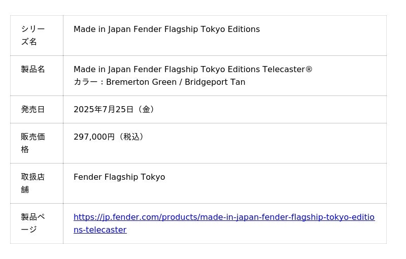 フェンダー旗艦店・特別仕様の限定シリーズ第2弾【Made in Japan Fender Flagship Tokyo Editions Telecaster(R)】2025年7月25日(金)より販売開始