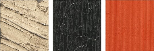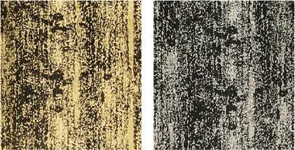 左から金箔4号箔(錆)、プラチナ箔(黒・朱)