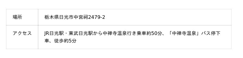 JR日光駅、東武日光駅からのシャトルバスがありますのでアクセスも安心です。