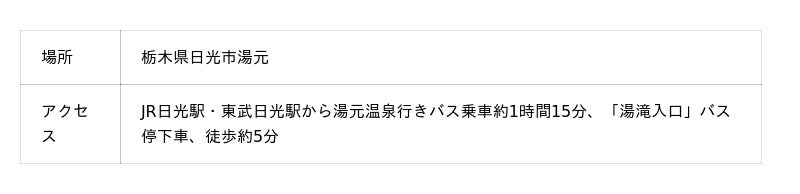 日光の夏はただ涼しいだけじゃない。奥日光を代表する滝の生命力を体感しましょう。勢いよく流れ落ちる水は岩肌にぶつかり細かな水しぶきとなって舞い上がります。
