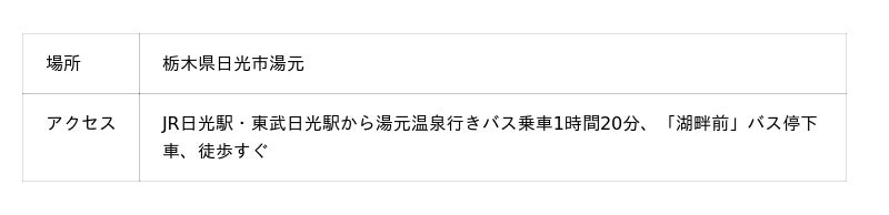 神秘的な雰囲気と清々しい空気の中に溶け込む時間は、奥日光の大自然を感じる贅沢なひとときです。