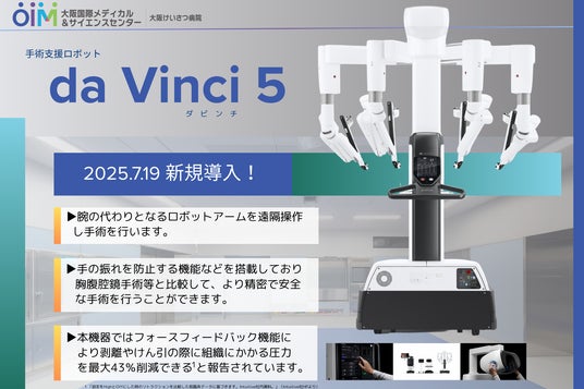 大阪けいさつ病院では、2025年7月22日(火)に大腸がん、7月23日(水)に胃がんの患者様に対し、最新鋭の手術支援ロボット「ダビンチ5」を用いた手術を実施予定です。22日の大腸がん手術は、国内では初となる「ダビンチ5」導入後のがん手術であり、当院の高度医療体制のさらなる進化を示すものです。