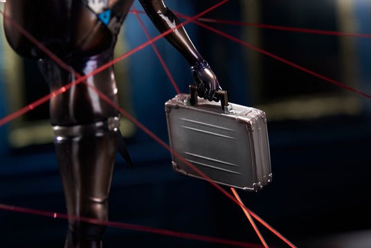 黒のボディスーツに身を包み、シルバーのアタッシュケースを携え、レーザートラップをかいくぐる緊迫のシーンを忠実に再現しました。