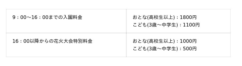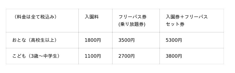 ※一部開園日で料金が変更することもございます。