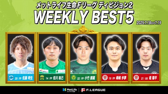 7月18日(金)~7月19日(土)に実施したメットライフ生命Fリーグ2025-26 ディビジョン2 第6節におけるベスト5をお知らせいたします。