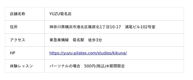 菊名駅に、ココロとカラダの健康美をサポートするピラティスレッスンを提供しているYUZUが通算49号店目を8月にOPEN!