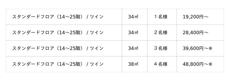 【客室タイプ・料金】 1泊1室料金(朝食付、税金・サービス料含む)