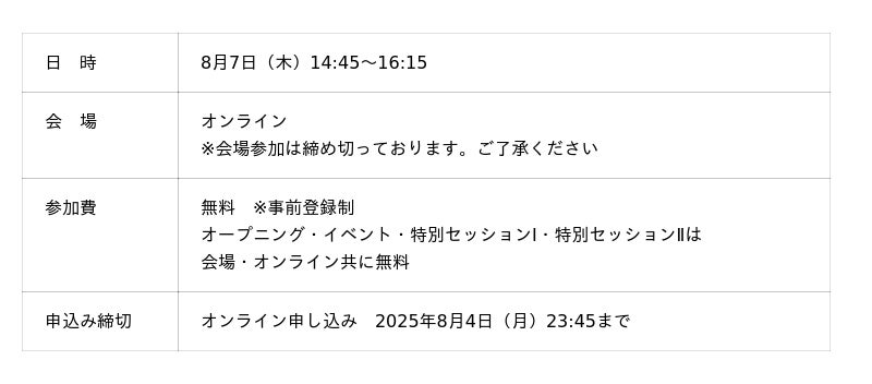 また、8月7日(木)には、弊社 代表取締役社長 はが弘明が特別セッションに登壇いたします。