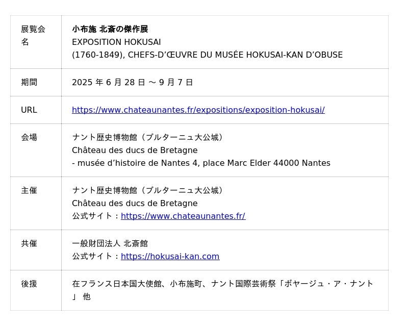 À Nantes, les chefs-d’œuvre du musee Hokusai-kan d’Obuse deferlent sur le chateau des ducs de Bretagne (意訳:ナント、小布施・北斎館の傑作がブルターニュ大公城に押し寄せる 2025年7月7日)