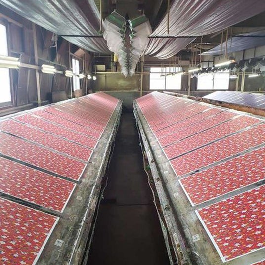 創業1970年。当時から反物や風呂敷、手拭いなどの生地で友禅染を手がけてきました。その染色技法を生かし、30年ほど前から素材を和紙に切り替えて生産しています。丸山染工オリジナルの友禅柄を制作し、千代紙や、貼箱、お祝い袋の装飾など幅広く活用されています。