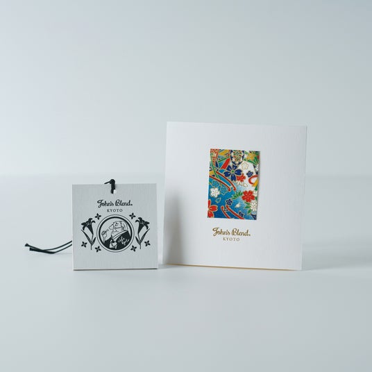 袋にあしらわれているデザインタグは、国内外問わず京都を感じていただきたいとの想いから、ローマ字の「KYOTO」と、カタカナの「キョウト」の2種類を各柄にご用意しました。