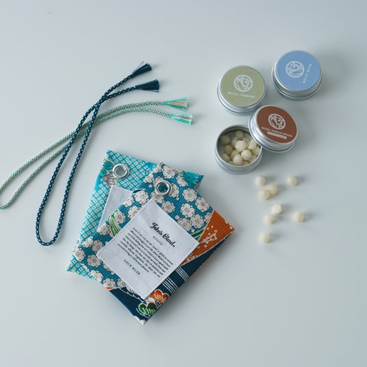 香り×サシェ袋×紐のカスタマイズをお楽しみいただける『YOUR MUSK』では、季節限定で展開する香りや、着物をリメイクして作られた世界に一つだけの一点もののサシェなど、訪れるたびに新たな出会いや発見をお楽しみいただけます。
