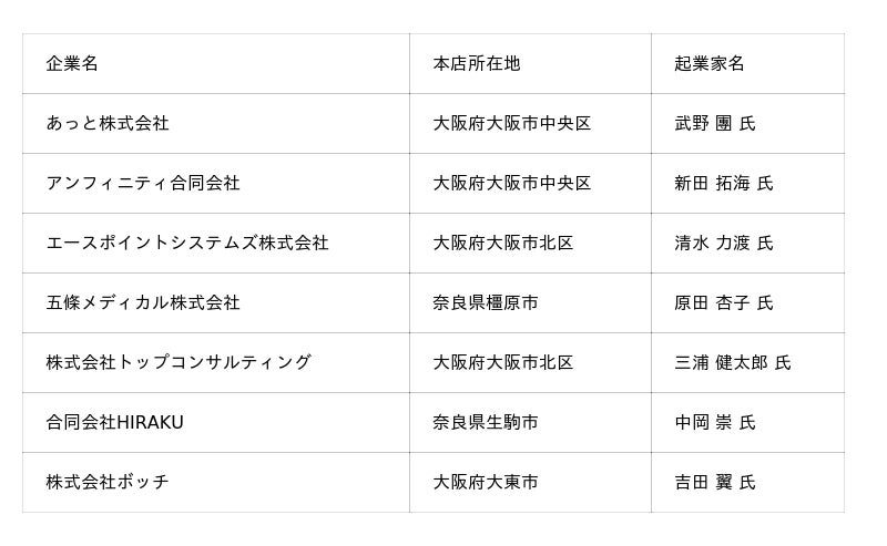 支援対象企業及び起業家名(2025年7月25日現在・企業名50音順)