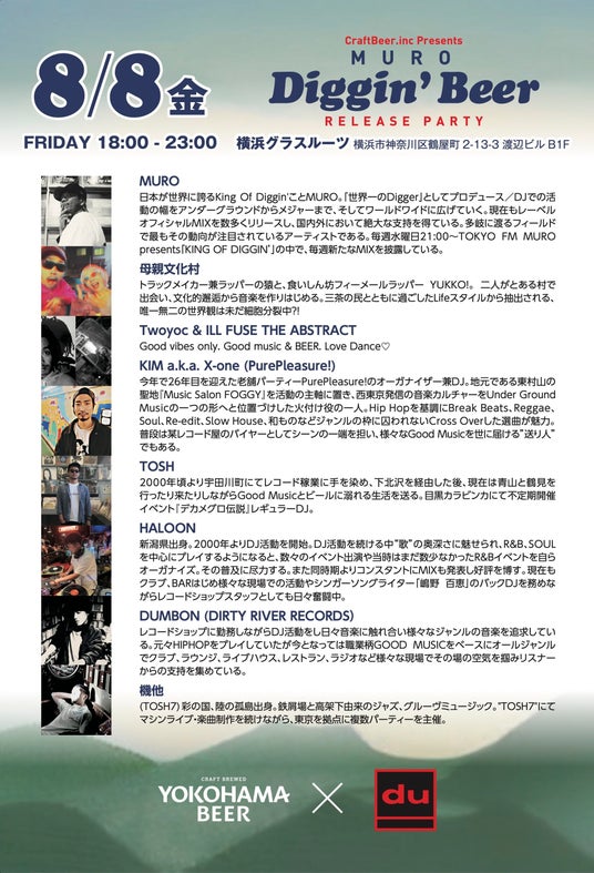 ★8/8(金)18時より横浜グラスルーツにてDiggin' Beerリリースパーティーを開催!