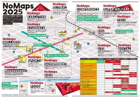 「NoMaps2025」の会場MAP。札幌中心部各所の会場でさまざまなプログラムを展開予定。