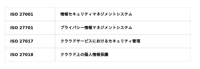 この4種のISO認証は、それぞれ以下のような分野を対象とした国際規格です。
