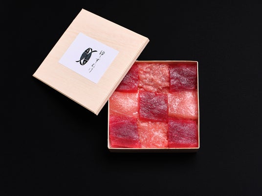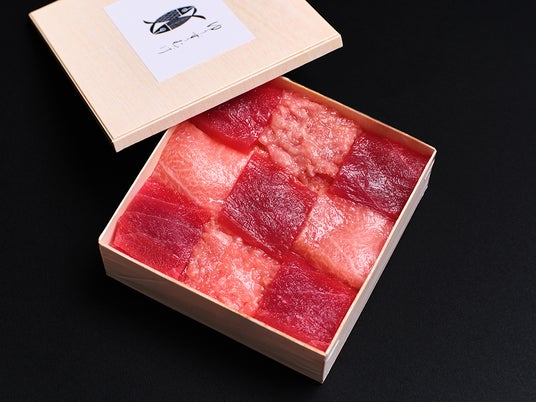 赤身とトロを交互に美しく並べた、縁起の良い「市松模様」が特徴的