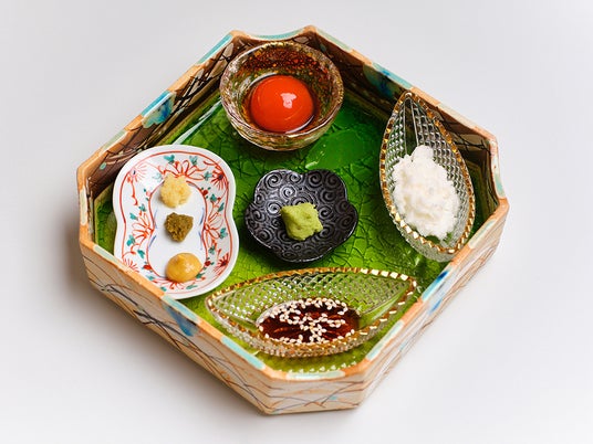 (生わさび / 胡麻醤油 / 卵卵黄 / 大和芋とろろ / 胡麻油ネギ塩)