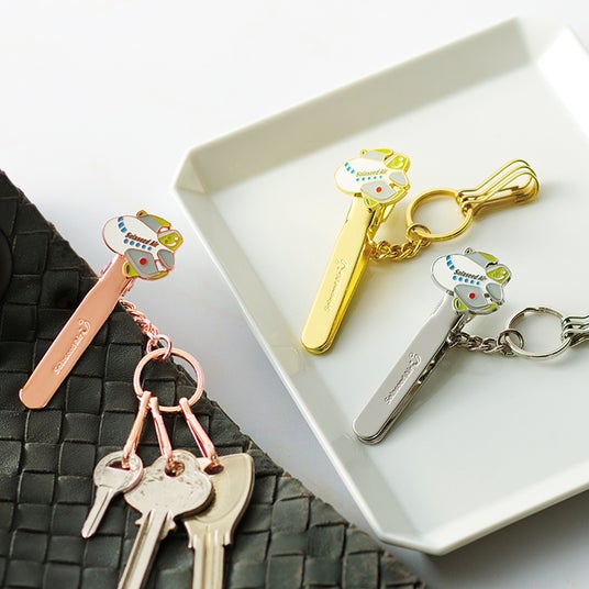 ソラシドエア キークリップ商品説明:バッグのふちや洋服のポケットなど、用途が多彩な飛行機がかわいいキークリップ。ソラシドエアの飛行機が映えるシルバー、ゴールド、ピンクゴールドの3色がございます。