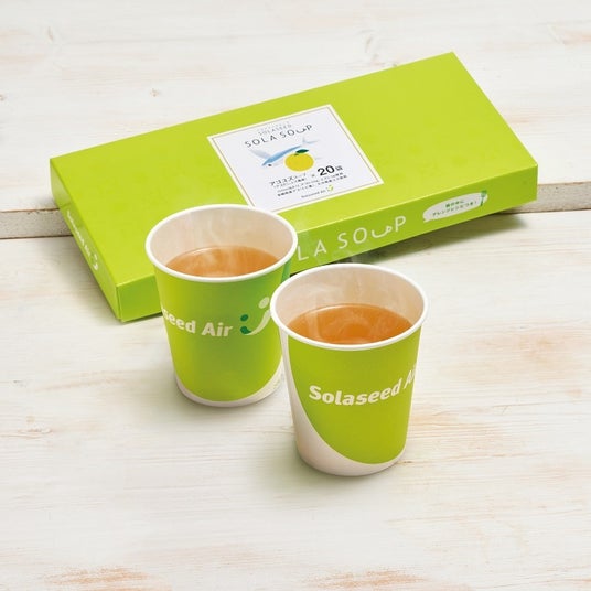 ソラシド ソラスープ商品説明:2012年の登場以来、“ほっと落ち着くおいしさ”で注文が止まらない、機内ドリンクサービスでも人気の 「 ソラシド ソラスープ 」。高級だしの代名詞・長崎県産のアゴを使用し、大分県産ユズで爽やかさをプラス。アレンジレシピも付いています。