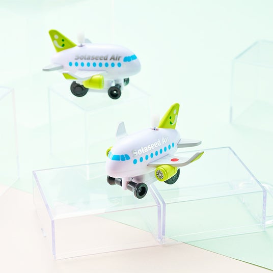 ソラシドエアオリジナル くるっぴー商品説明:机の上からクルっと回転をしても落ちないゼンマイ式の飛行機型おもちゃ。“落ちない”ため合格祈願グッズとして大人気です。頑張ってほしい大切な人への贈り物としてもお薦めです。
