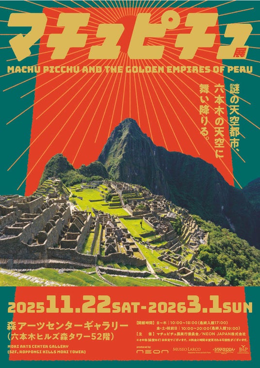 「マチュピチュ展」実行委員会/NEON JAPAN株式会社(代表取締役社長:ウィー・チーション、以下「NEON JAPAN」)は、2025年11月22日(土)から2026年3月1日(日)まで、森アーツセンターギャラリー(六本木ヒルズ森タワー52階)にて「マチュピチュ展」を開催いたします。