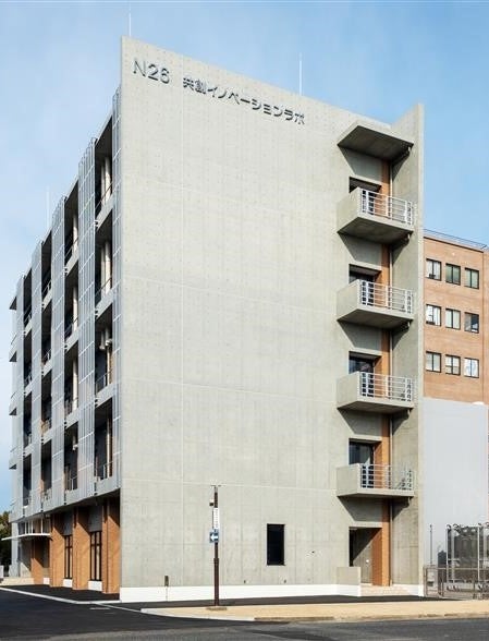 文部科学省「地域中核・特色ある研究大学の連携による産学官連携・共同研究の施設整備事業」(令和4年度第2次補正予算)の採択を受けて本学津島キャンパスに整備した新施設です。本施設整備を通じ、研究成果を基にした国内外の社会課題解決やスタートアップを含めた新産業の創出などのイノベーションに結び付け、大学の機能強化を図ります。本学施設の建設にあたっては、事務職員や施設系技術職員、URAらが地域の同様な施設を見学し、情報収集を行ったうえで、コンセプトを主体的に決め、事業にあたりました。