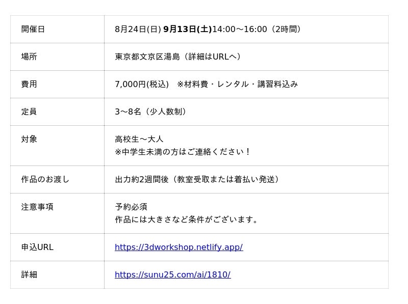 - AI、3Dプリンター、デザインなどに少しでも興味がある社会人