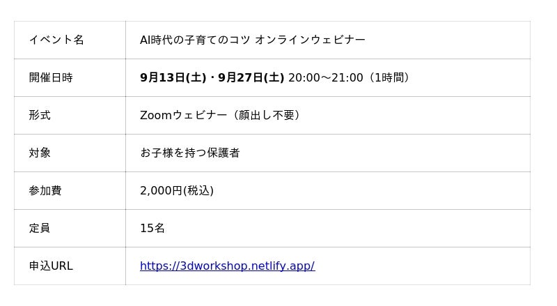 オンラインウェビナー 『AI時代の子育てのコツ』