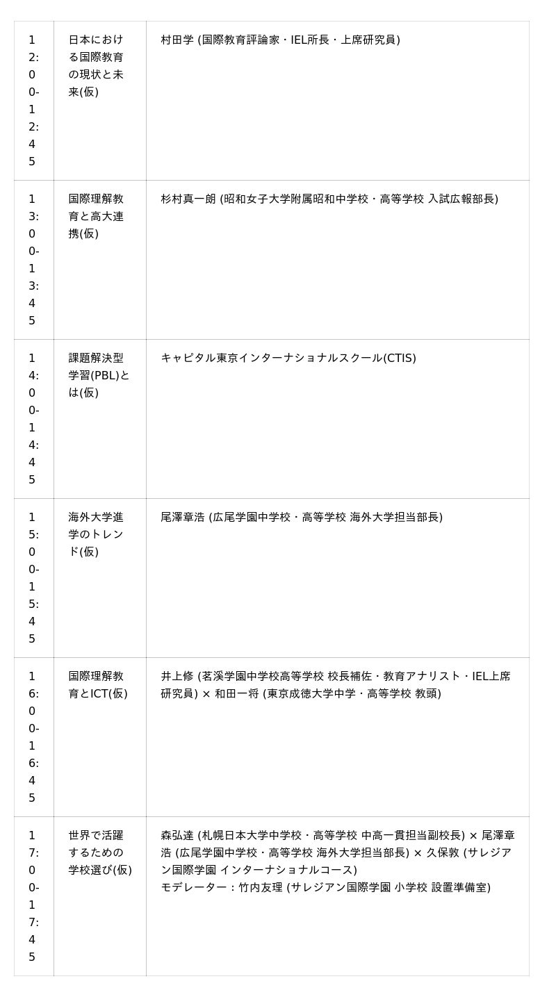IEL国際教育セミナー2025夏 プログラム(予定・敬称略)