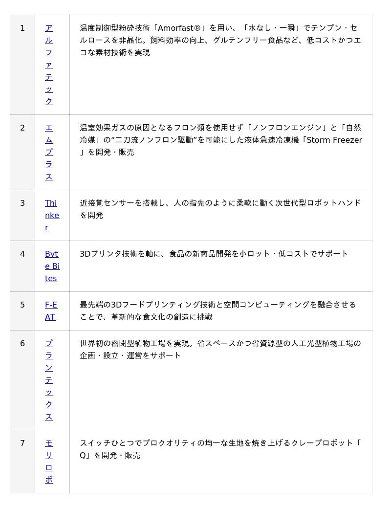 日本が持つ“ものづくりの力”、デバイス開発やメカトロニクスに関する知見は今もなお、世界トップクラスといえます。また食の分野はどれだけデジタル化やAIの活用が進んでも、農作業、原料製造、調理など、最終的には「道具」や「機械」が必要であり、ものづくりの力は食の領域の発展に欠かせない要素といえるでしょう。