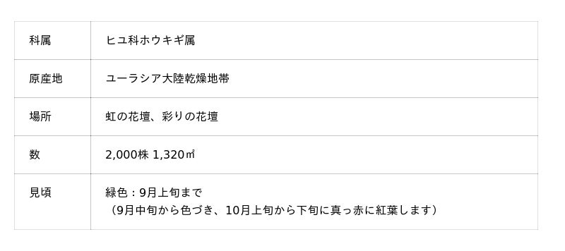 見頃を迎えたグリーンコキア。奥に見えるのがPlayCafe。