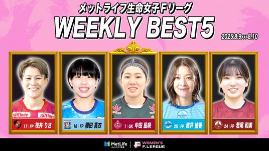8月9日(土)~8月10日(日)に実施したメットライフ生命女子Fリーグ2025-26 第7節におけるベスト5をお知らせいたします。