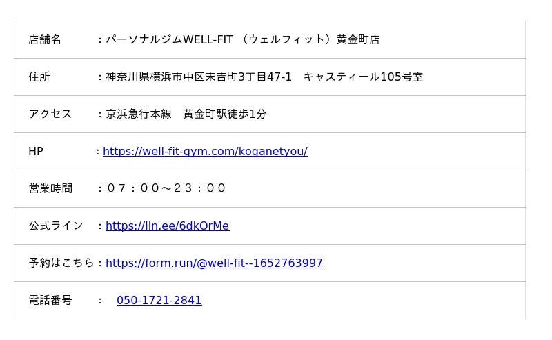 HP :https://well-fit-gym.com/youkoudai/