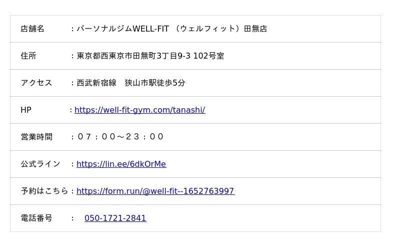 HPはこちら→https://well-fit-gym.com/tanashi/