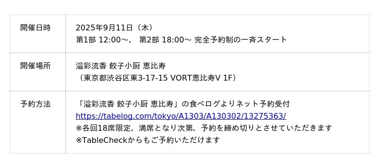 【東京初開催】オーナー・リンさんが腕を振るう「リンさんDay」を「溢彩流香 餃子小厨 恵比寿」にて9月11日(木)に開催、ネット予約受付中