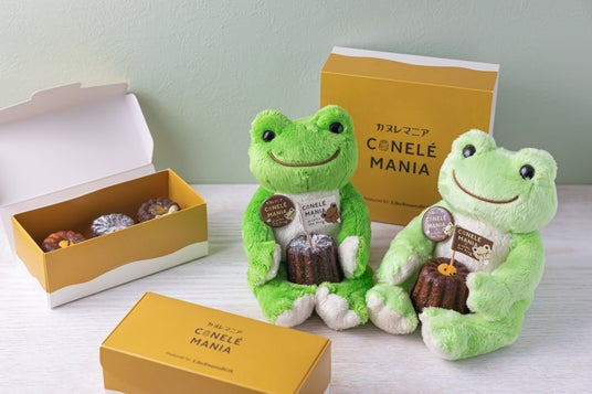 カヌレのセレクトショップ<カヌレマニア>と<かえるのピクルス>が初めてコラボ企画を実施します。コラボ缶バッジとコラボフラッグ付きの特別セットを用意しました。王道の人気カヌレセットと、シーズナルの期間限定カヌレセット、2パターンからお選びいただけます。