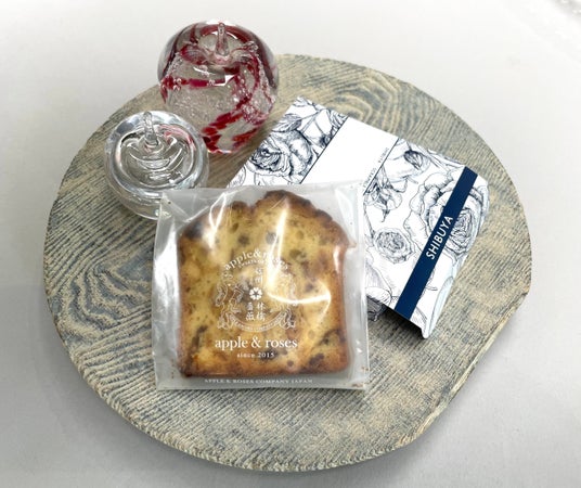信州産りんごのほどよい甘みと酸味が織りなす贅沢な味わいが特徴のパウンドケーキ。国産小麦やバター、ブランド卵など、こだわりの素材を使用し、素材本来の魅力を丁寧に引き出しています。ふんわり広がる豊かな香りとやさしい甘さをお楽しみいただけるパウンドケーキ1切を、渋谷限定のパッケージに詰めました。