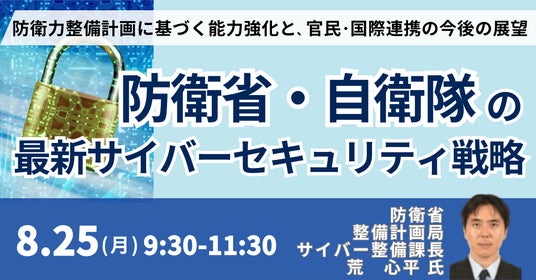 JPI(日本計画研究所)は、防衛省 整備計画局 サイバー整備課長 荒 心平 氏を招聘し、防衛省・自衛隊の最新サイバーセキュリティ戦略について詳説いただくセミナーを開催します。