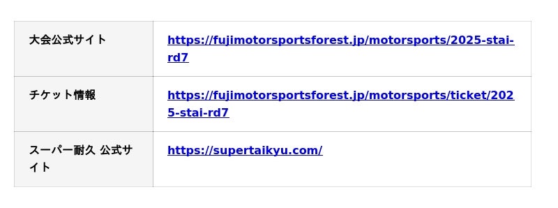 ぜひ富士スピードウェイの2025年シーズンを締めくくる本イベントに仲間やファミリーと一緒にお楽しみください!