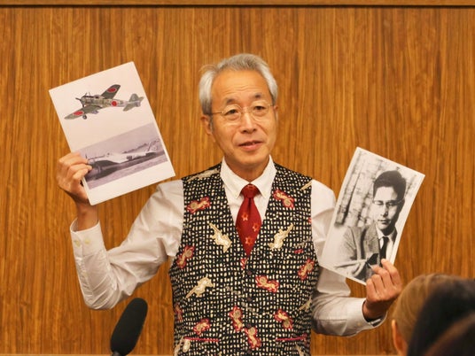 続いて赤塚氏から、日本のロケット開発の父・糸川英夫氏のエピソードを交えつつ、日本の歩みと戦争の歴史について熱く語られました。靖国神社への正式参拝や遊就館の見学を経ての講演であったこともあり、日本の戦争と平和への思いが一層強調されました。