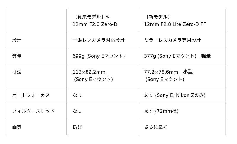 ※従来モデル「LAOWA 12mm F2.8 Zero-D」も引き続き販売いたします。